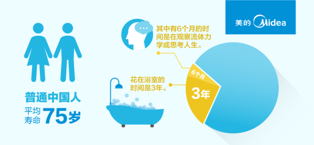 按中國人平均壽命為75歲來算,花在浴室的時間是3年,其中有6個月的時間是在觀察流體力學或思考人生。