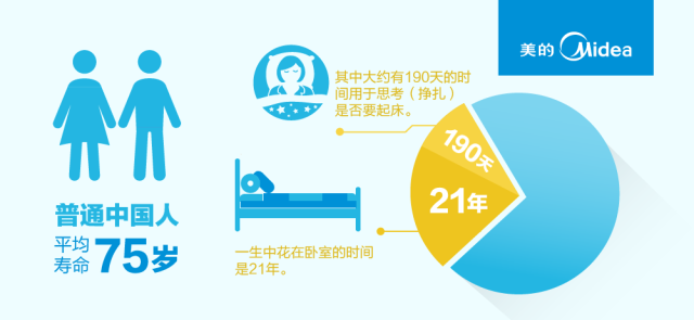 按中國人平均壽命為75歲來算,一生中花在臥室的時間是21年,其中大約有190天的時間用于思考(掙扎)是否要起床。