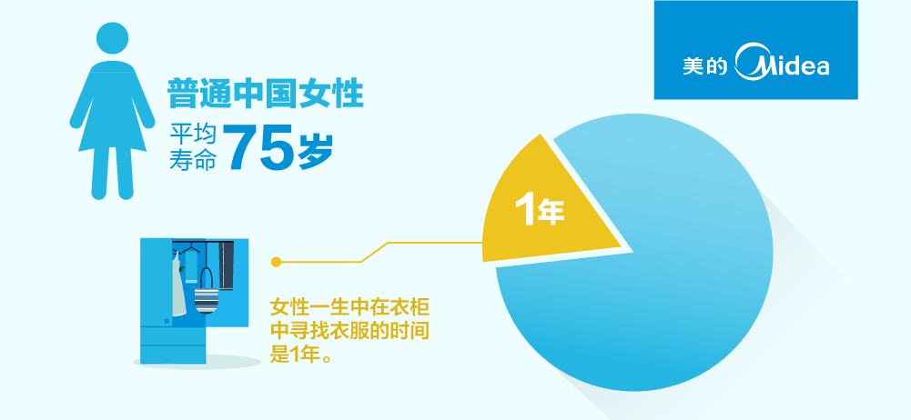 按中國人平均壽命為75歲來算,女性一生中在衣柜中尋找衣服的時間是1年。